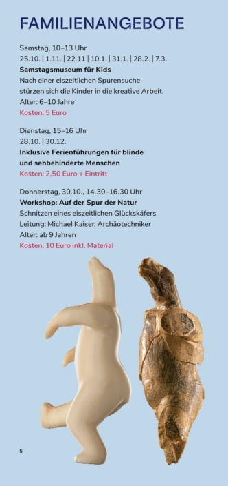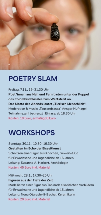 Die Archäologie sagt: Ja! Vor etwa 45.000 Jahren kamen moderne Menschen nach Europa und schufen meisterhaft gearbeitete Kunstwerke. Kleine Skulpturen von Menschen und Tieren vermitteln noch heute, wie unsere Vorfahren ihre Lebenswelt wahrgenommen haben. Die 23 berühmtesten Figuren Europas werden durch originalgetreue Nachbildungen im wahrsten Sinne begreifbar – Anfassen ist ausdrücklich erwünscht.
